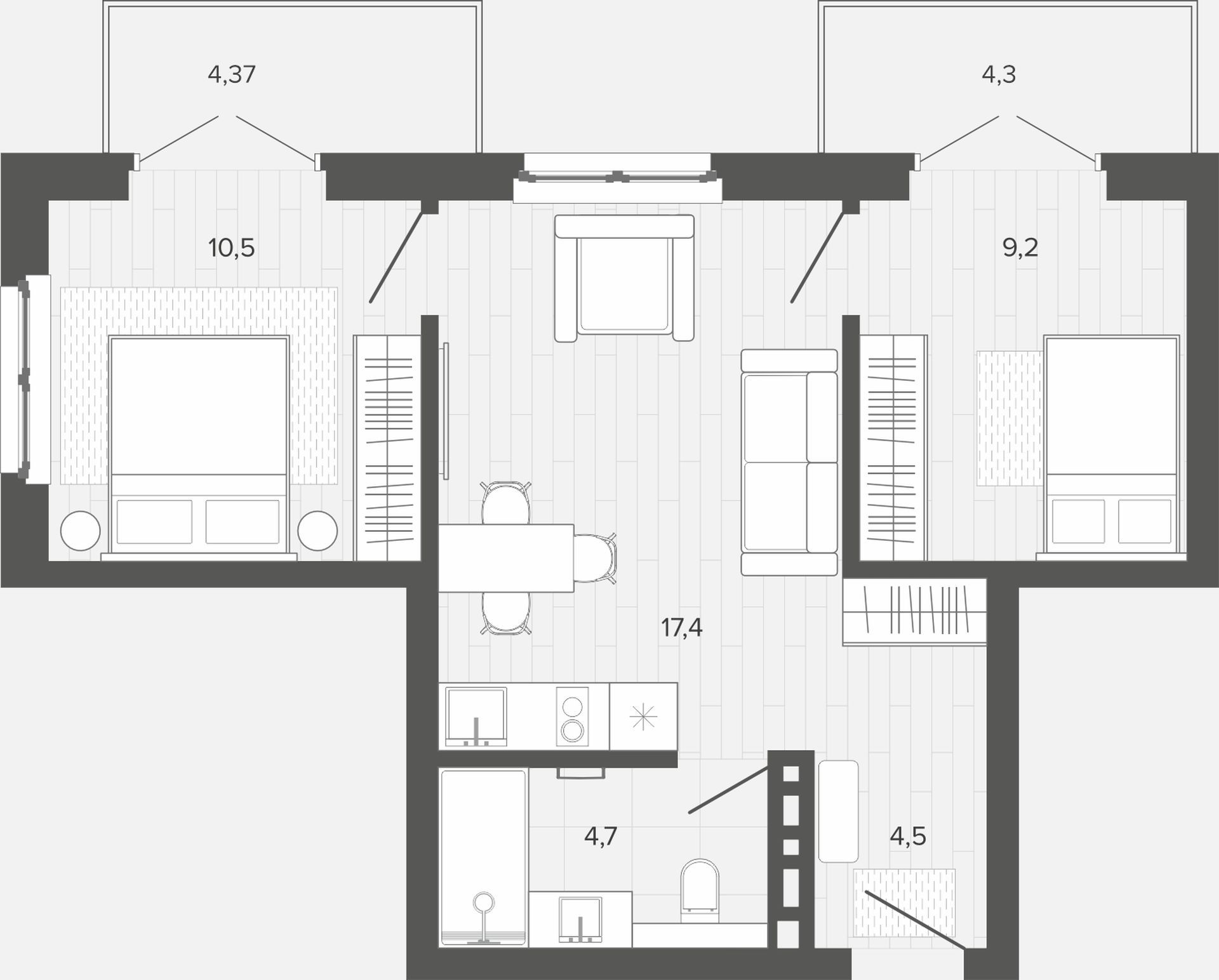 Вышка, 54.97 м2