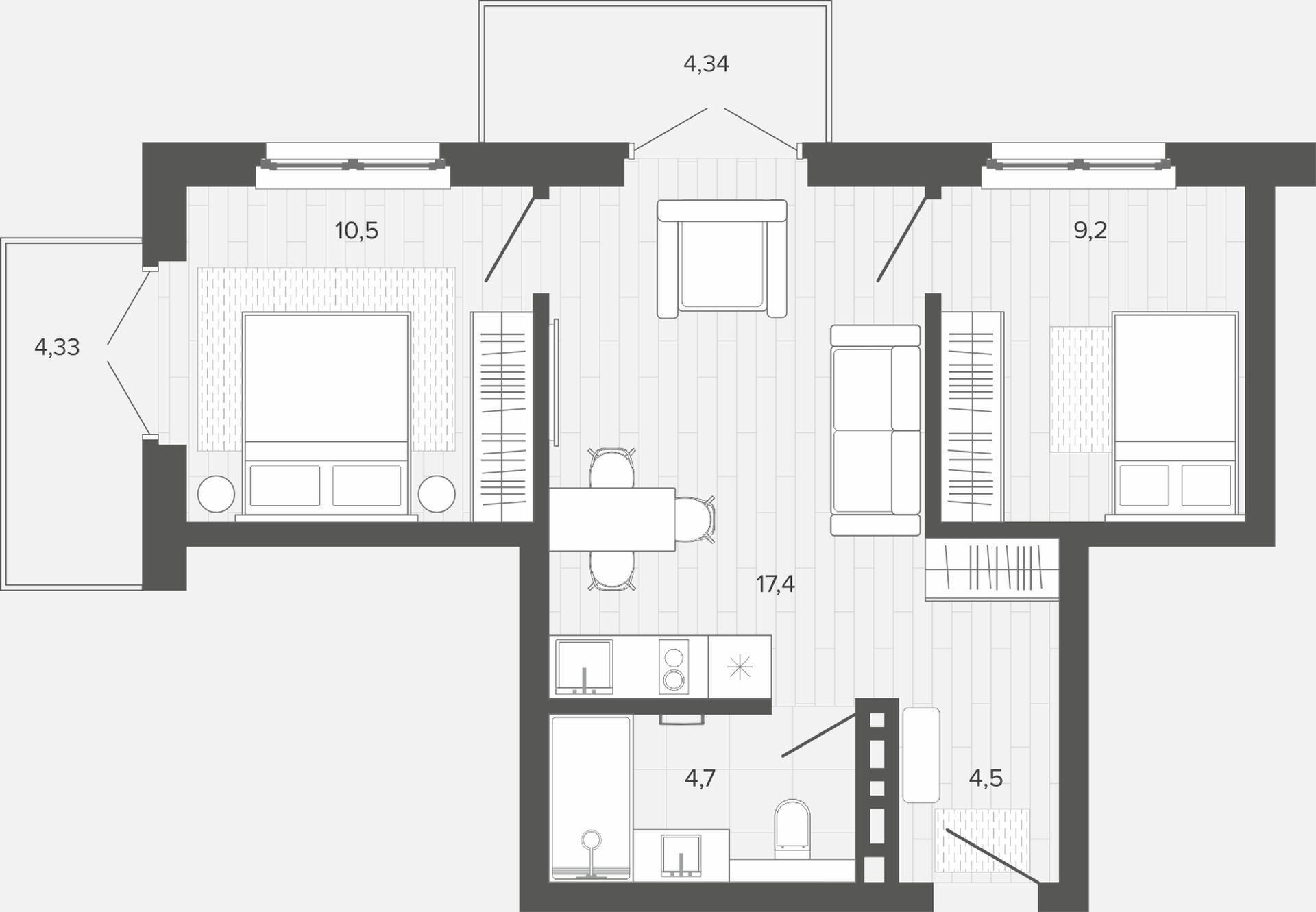 Вышка, 54.64 м2
