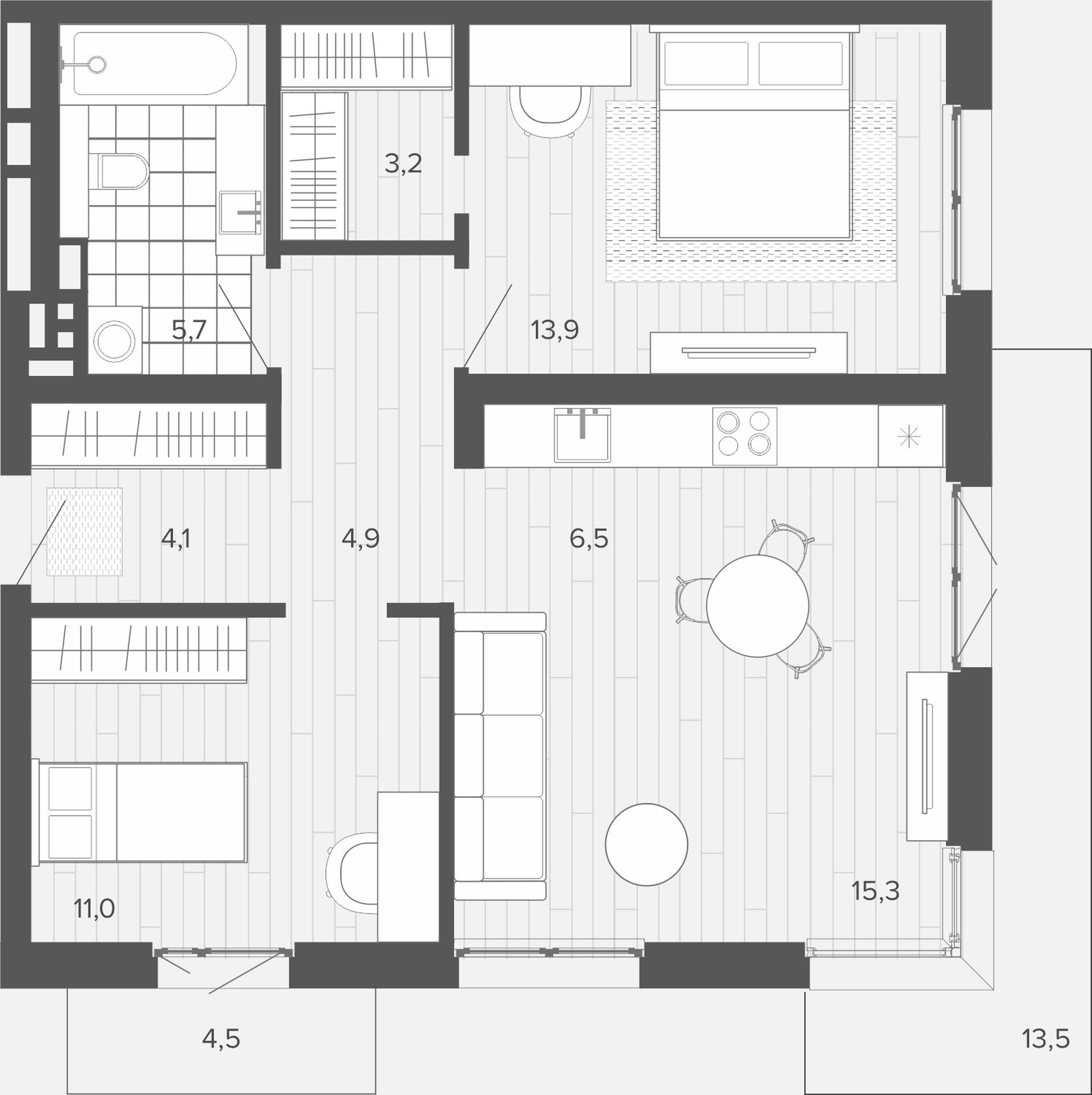 Планировка квартиры способствует созданию разных сценариев жизни. Гостиная плавно перетекает в уютное место, для которого вы выбираете подходящую функцию - чтение книг, уединение с собой, работа в личном кабинете. Особенно когда балкон является продолжением интерьера и зонирует от внешнего пространства.